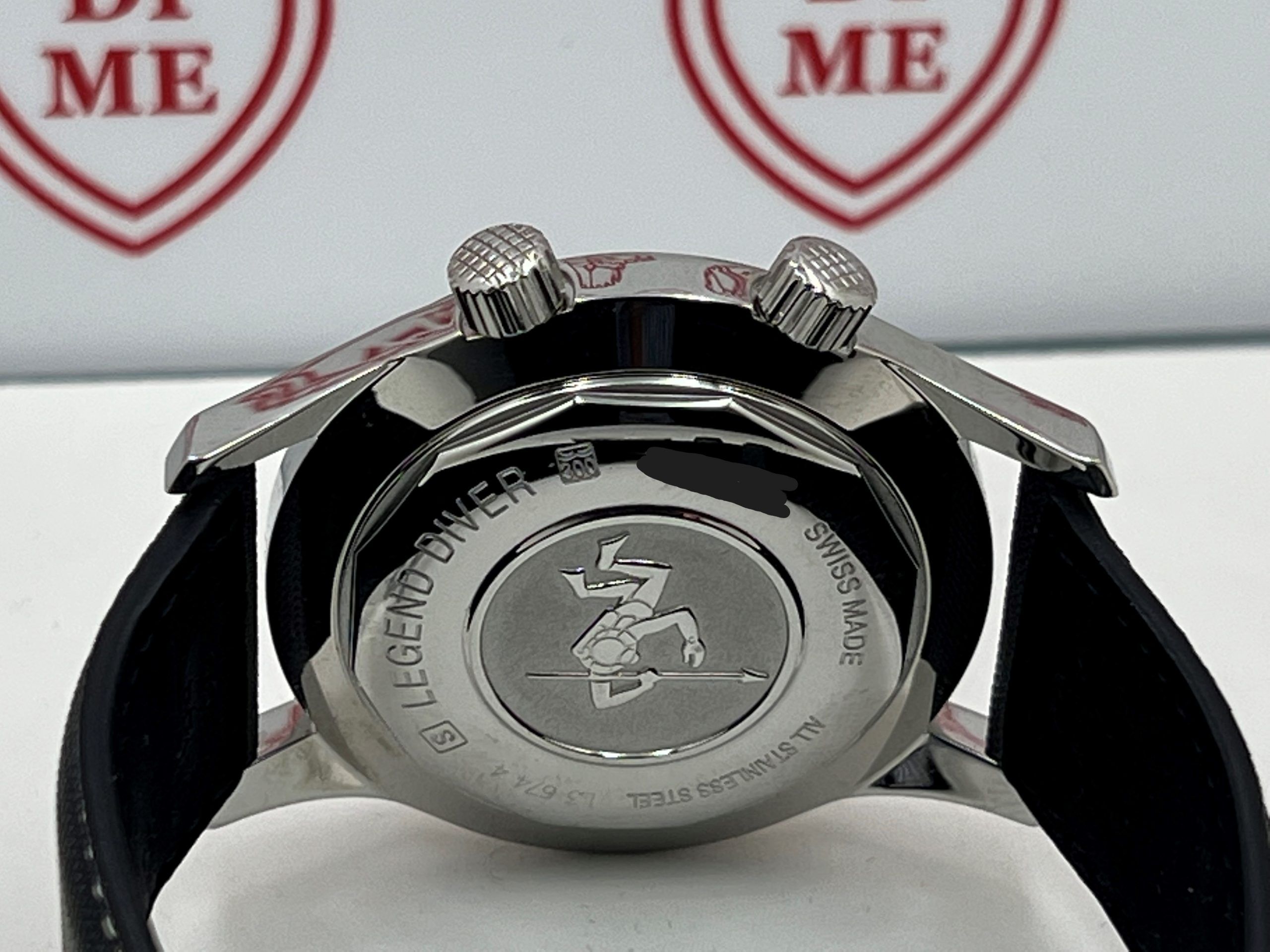 Linea sobria e dall’aspetto robusto, il Legend Diver si presenta con quella che ancora ai nostri giorni risulta una chicca di tecnica ed intelligenza, ovvero, la ghiera interna per il calcolo dei tempi di immersione pilotata da una corona a vite dedicata.