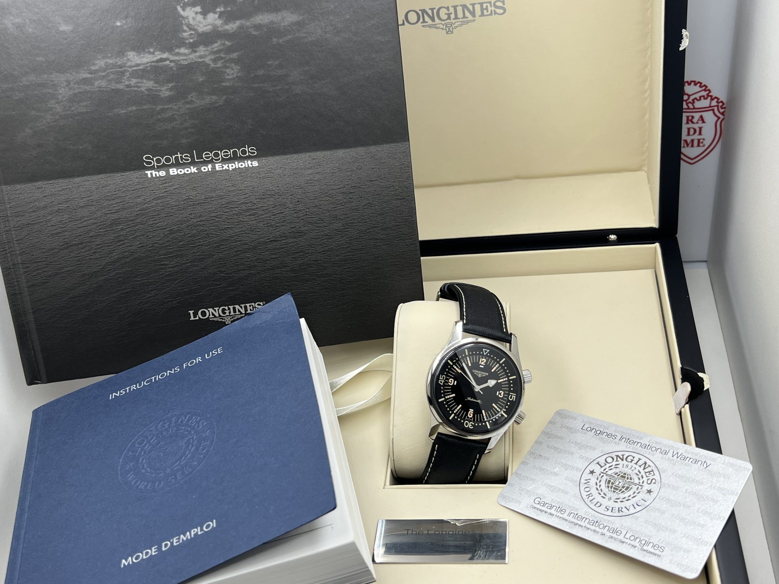 Completo di grande scatola Longines personalizzata per questo modello, Book dedicato, istruzioni e garanzia originale ufficiale Longines di concessionario Italiano non datata.